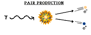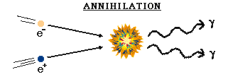 The first interaction to be considered was the constant annihilation and re-creation of electrons and positrons. One of the most famous scientific discoveries of this century is the equivalence of matter and energy. The basic concept is that under the proper conditions, energy can be turned into matter, or vice versa. This is not something common to our experience because of the conditions in which we now live (it's too cold and there's not enough pressure). But in the early universe, with its high temperature and density, this was common. Photons were converted into electrons and positrons. (Known as PAIR PRODUCTION) They could not be converted into heavier particles (protons and neutrons) because they didn't have enough energy. These electrons and positrons would eventually collide with their respective anti-particle, and then be changed back into radiation. (Referred to as ANNIHILATION)
