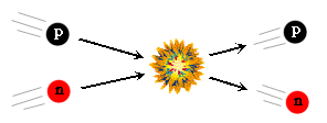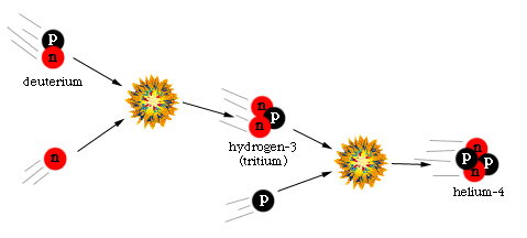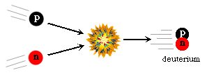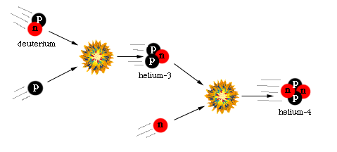Up to this time (just over three minutes past the Beginning) there had been no nucleosynthesis. This was a result of the high energy density. In order to form atomic nuclei, the nucleons (the scientific word for protons and neutrons) must be able to collide and stick together. In the early universe the key reaction was the collision of a proton and a neutron to form a deuterium nucleus (an isotope of hydrogen). Collisions between protons and neutrons had been happening continuously since the Beginning, but their energies were too high to allow them to stick together to form deuterium nuclei.