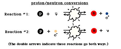 The second interaction was the conversion between protons and neutrons. These heavier atomic particles were already present In the Beginning. They were continually changing back and forth by means of the following two reactions:
